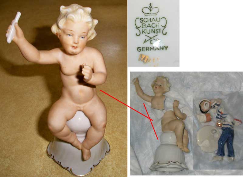 19) Путти со свирелью. Schaubach Kunst. 1953-1958. В*Д*Ш=15*6,5*6,5 см. Разбит