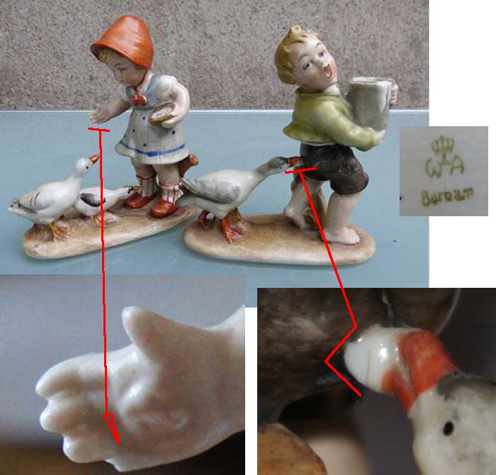 Валерия. Парные статуэтки с гусями. Wagner&Apel. 1935-1949. В*Д*Ш=12*12*4. Скол пальца у девочки и в