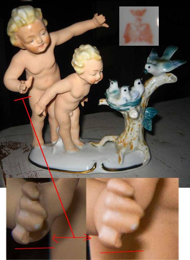 Реставратор Валерия. Мальчики с птицами. Gräfenthal. Клеймо 1935-1972. Микроскол мизинца.