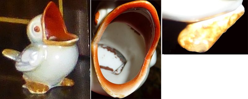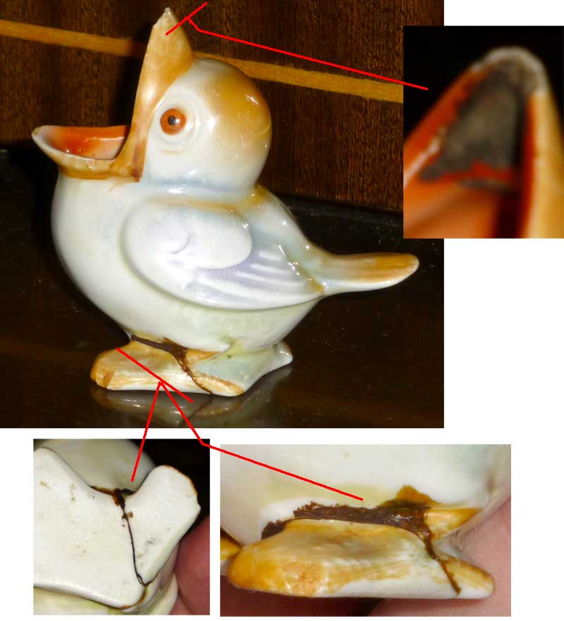 см. Использовалась - с клюва пооблезла краска вместе со слоями фарфора,