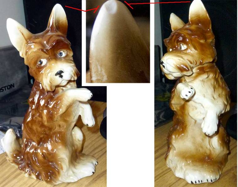 (не был указан), внутри видна склейка, заделанная снаружи. Лапа правая выглядит