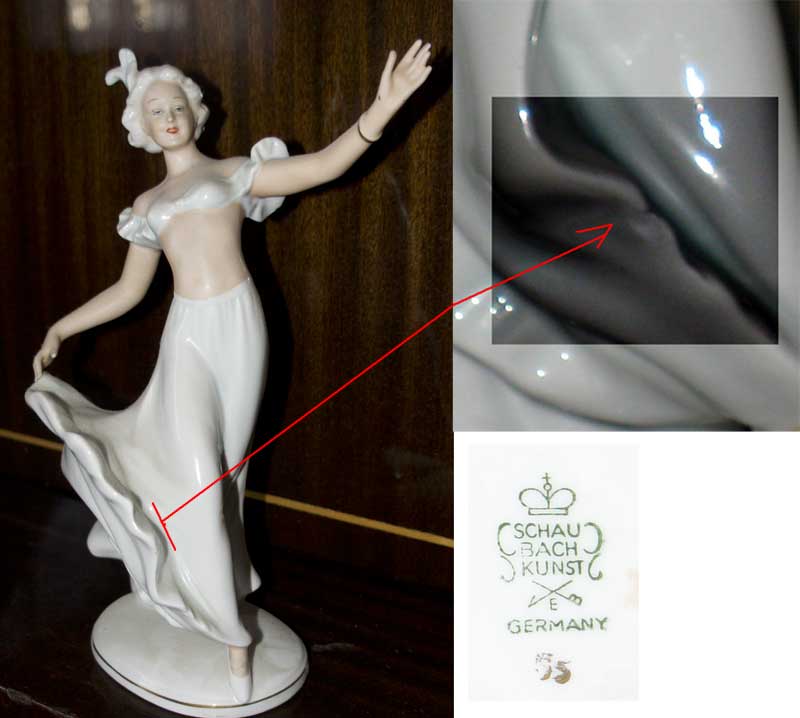 поправляющая пуанту. Schaubach Kunst. 1953-1958. В*Д*Ш=18*13*9 см. Разбита