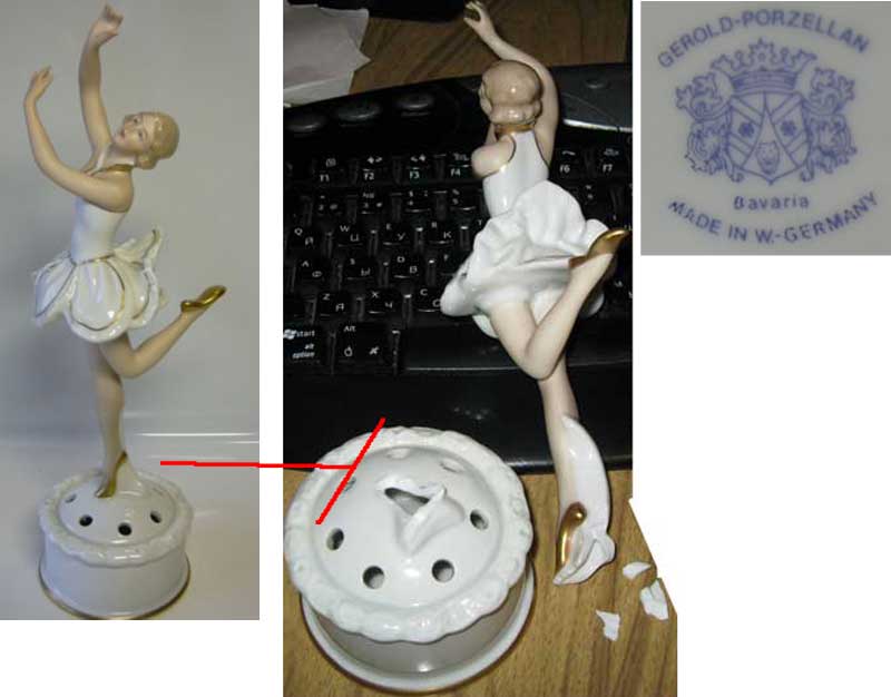 Фигурка отбита от основания при пересылке. Все кусочки есть. Фото ДО и ПОСЛЕ.