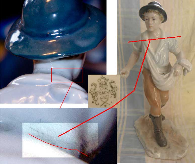 Также была отколота и преклеена суперклеем нога. Фото ДО и ПОСЛЕ